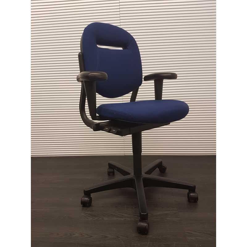 Ahrend 220 bureaustoel, blauwe stof, zwart kunststof voetenkruis, 3D softpad armleggers