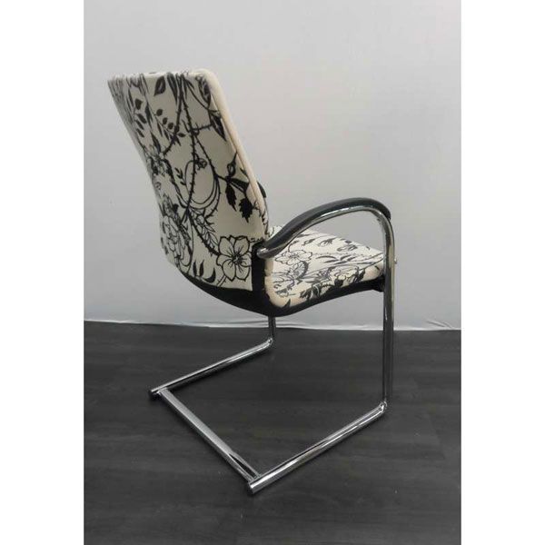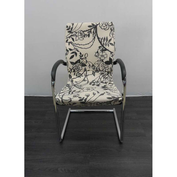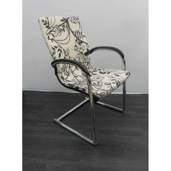 Ahrend 230 vergaderstoel, zwart/wit design stof bloemenprint, kantel rug, schuifzitting, chroom slede