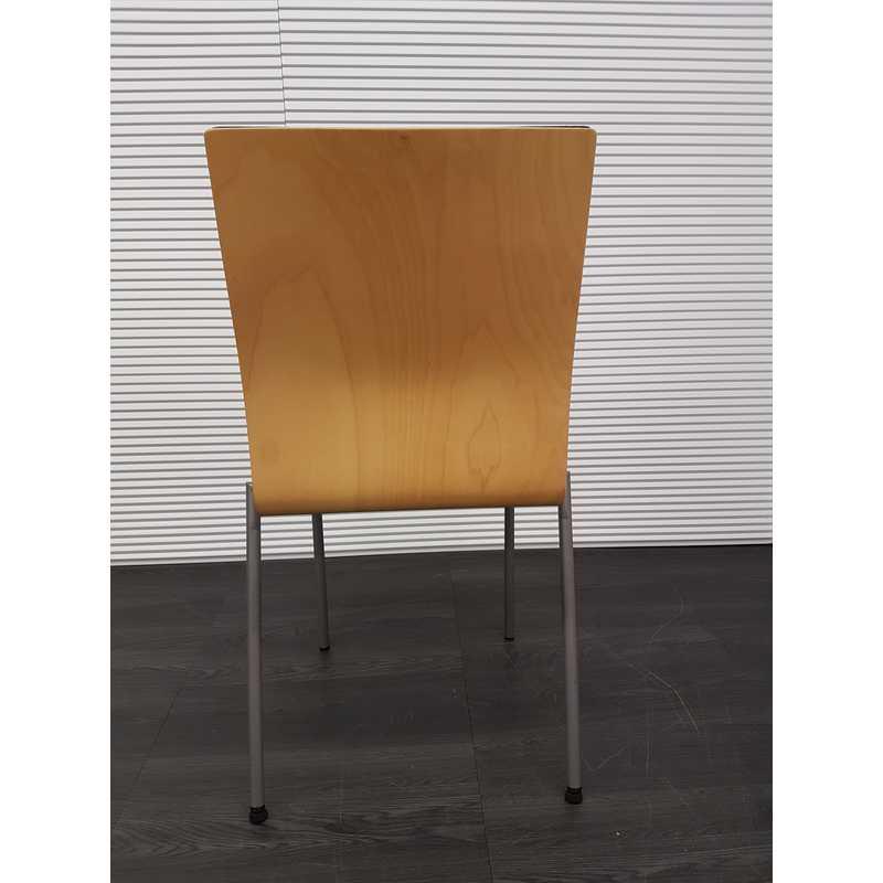 Kantinestoel, hout met nieuwe bruin gestoffeerde zitting en rug, poten mat antraciet