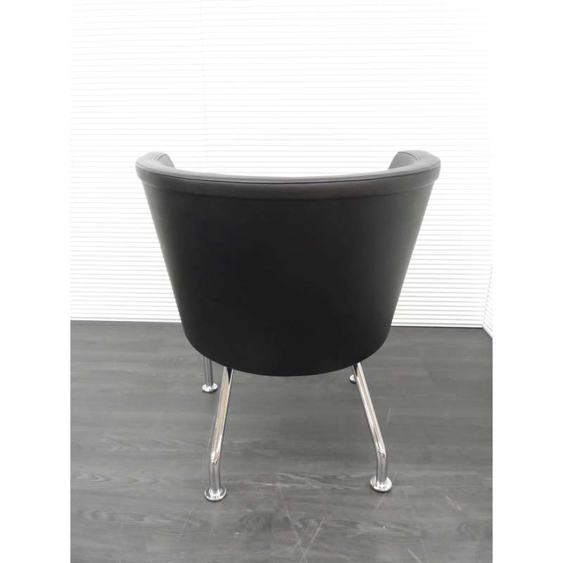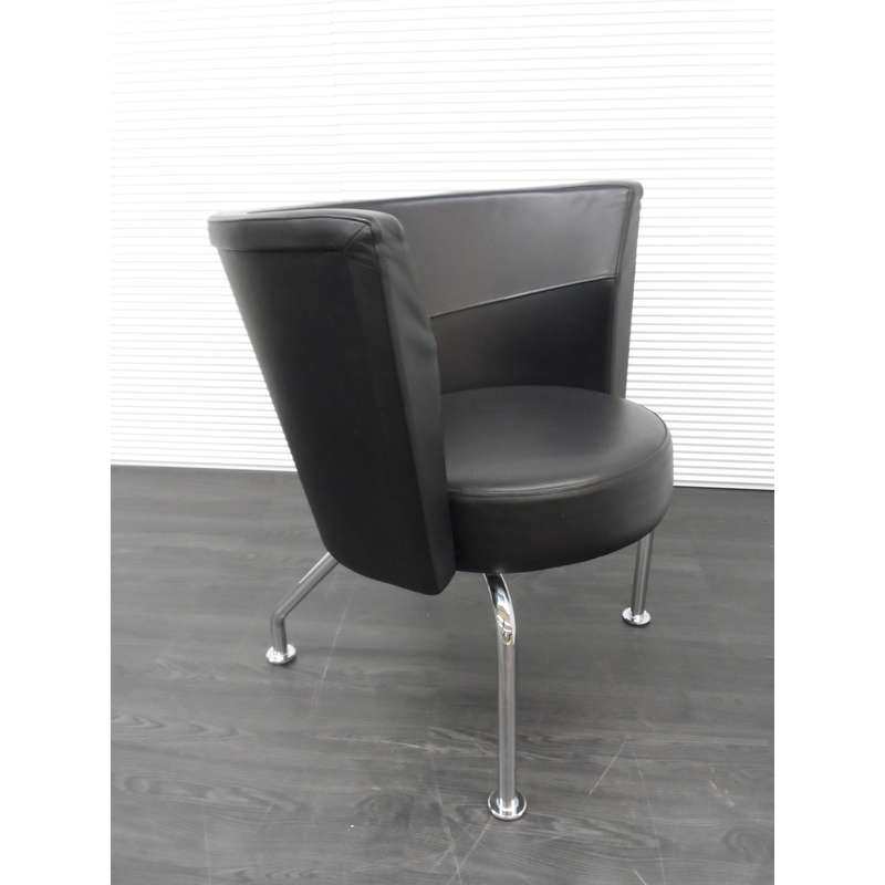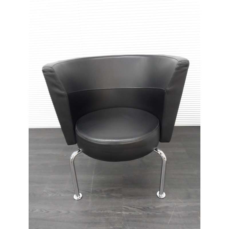 Lammhults vergader fauteuil halfrond. Materiaal zwart leder met chromen poten